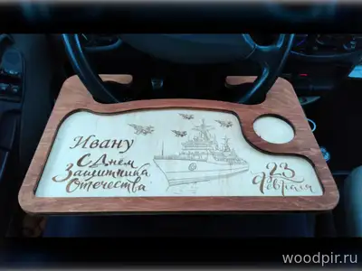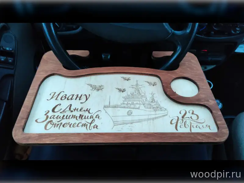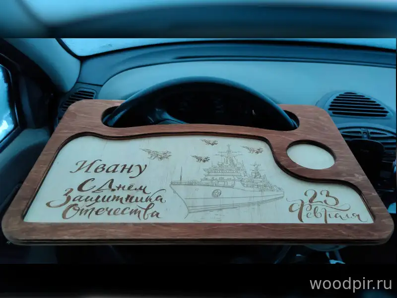 Подарок для автомобилистов. Изготовлю на заказ столик автомобильный. Столик можно закрепить как сверху, так и снизу. Стоик на фотографии изготовлен из 12 мм. березовой фанеры. Гравировка наноситься по вашему эскизу или описанию. Макет подготовлю бесплатно. Готовая работа окрашивается и покрывается лаком для защиты от внешних факторов.